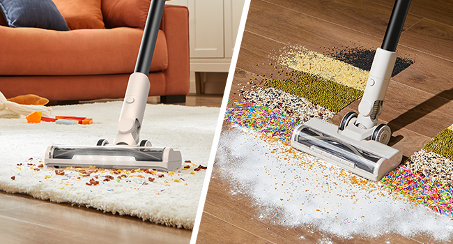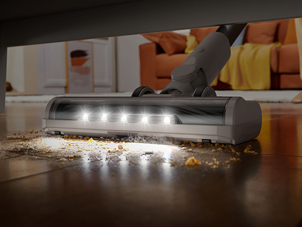 The specially designed V-shaped brush perfectly tackles all kinds of dirt. The combination of hard and soft bristles works great on tiles, floors, and carpets alike. In addition, the brush head is equipped with LED lights that will illuminate even the darkest corners under furniture or in corners. With this feature, you won’t miss a single hair or crumb, and the floors throughout your home will shine with cleanliness!