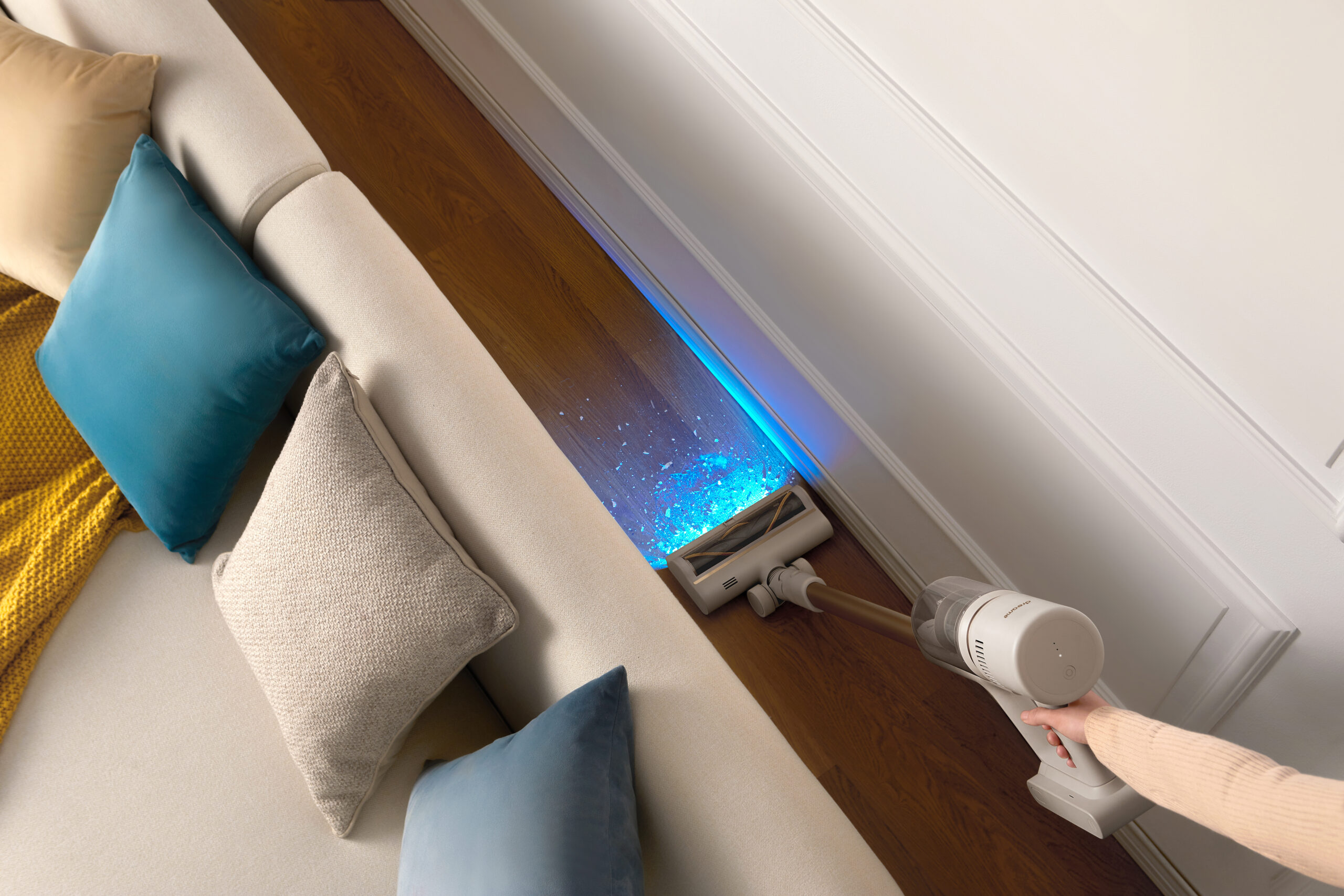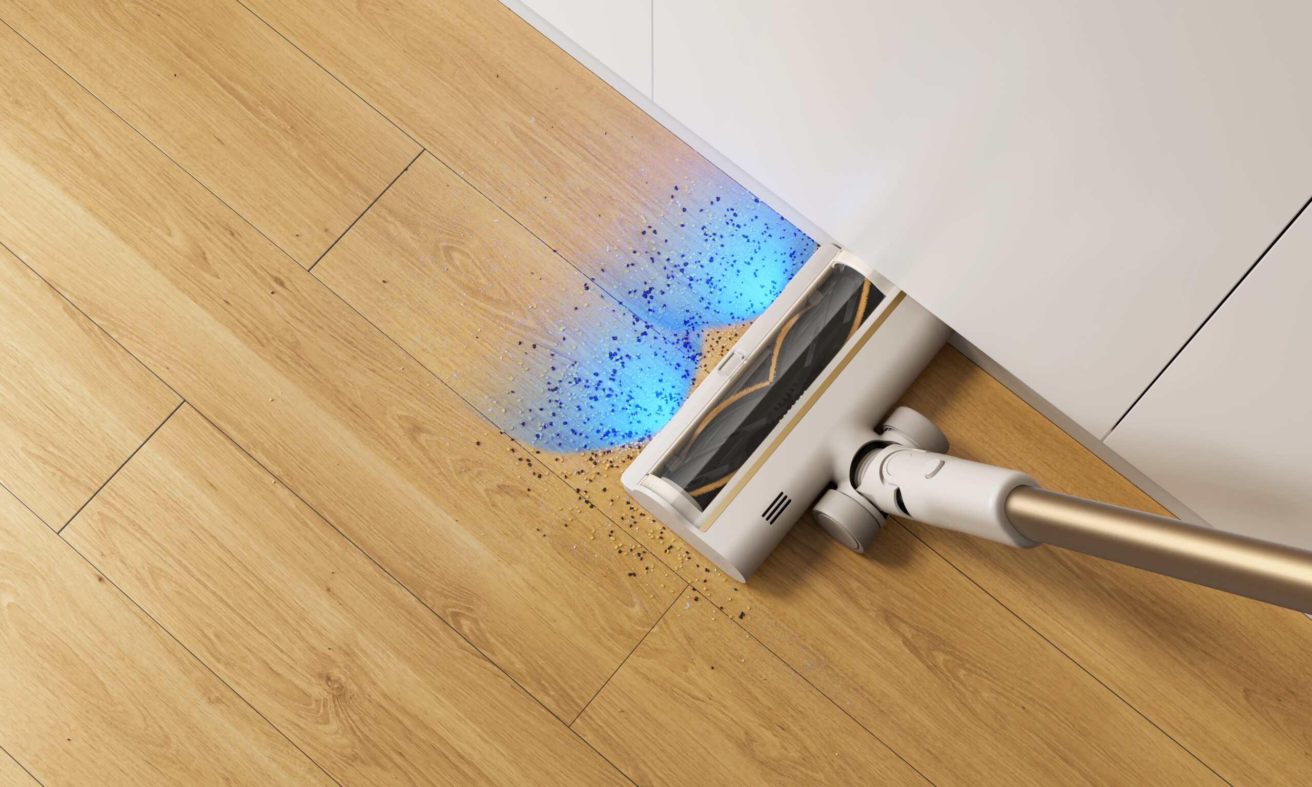 U20 maintains a powerful 120AW suction with a high-speed 100,000RPM* motor, allowing for 60 minutes* of consistent cleaning to efficiently pick up dust, dirt, debris, and hair.
