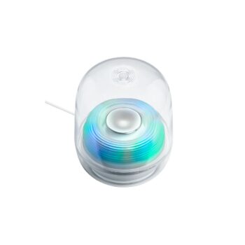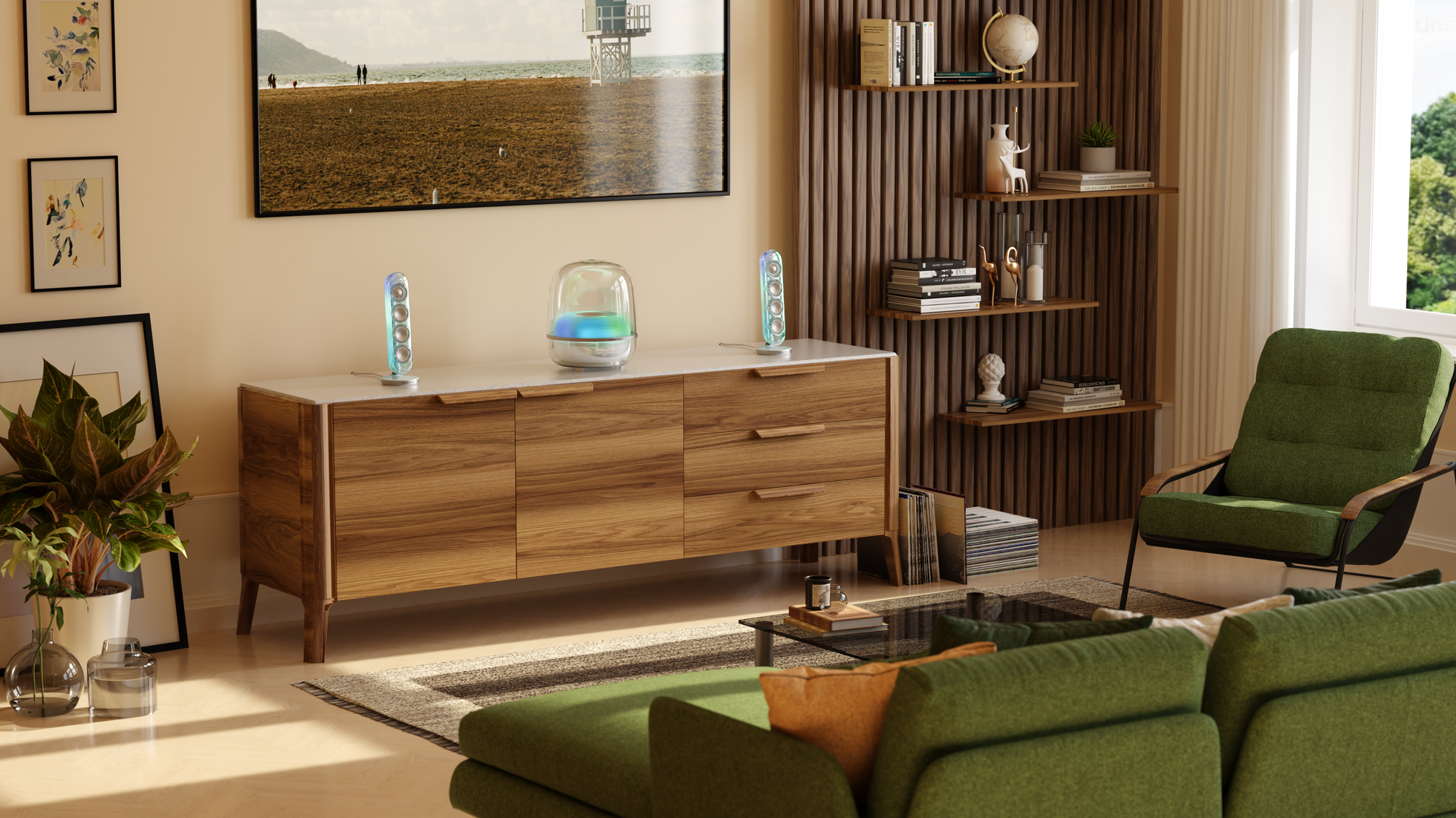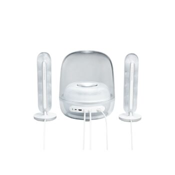 SoundSticks 5 elevates the iconic SoundSticks design with a fully transparent dome in your choice of stylish hues, highlighted with premium metallic accents. The uplifted subwoofer adds a refined visual element, while thoughtful features like the streamlined connectivity island and intuitive touch controls on the base of the right speaker keep things simple and easy to use.