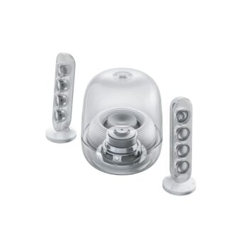 SoundSticks 5’s three-way speaker design provides a detailed, clear stereo soundstage. Its down-firing subwoofer delivers punchy, accurate bass. Dual silk dome tweeters and mid-range drivers provide flawless vocal and instrument reproduction.