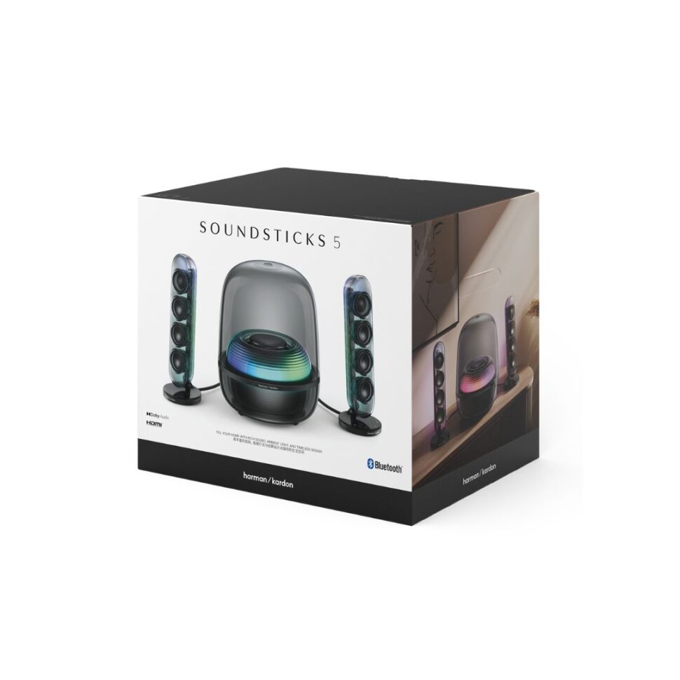 Seamlessly integrate your SoundSticks 5 with any modern TV in seconds with just one HDMI ARC cable. Enjoy high-quality Dolby audio for all of your TV, movie, and gaming nights. It’s perfect for living rooms or anywhere you want the most immersive sound with the least hassle.