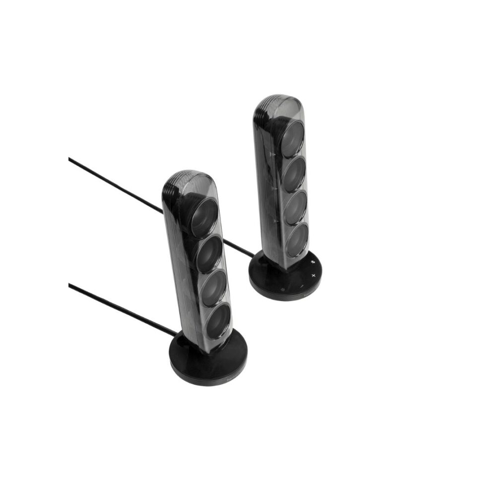 Transform your experience with the engaging lightshows of SoundSticks 5. Vibrant colors and hypnotic movements elevate the impact of your favorite music. Evoke your choice of soothing, relaxing, or energetic vibes to perfectly complement your music and harmonize with your emotions.